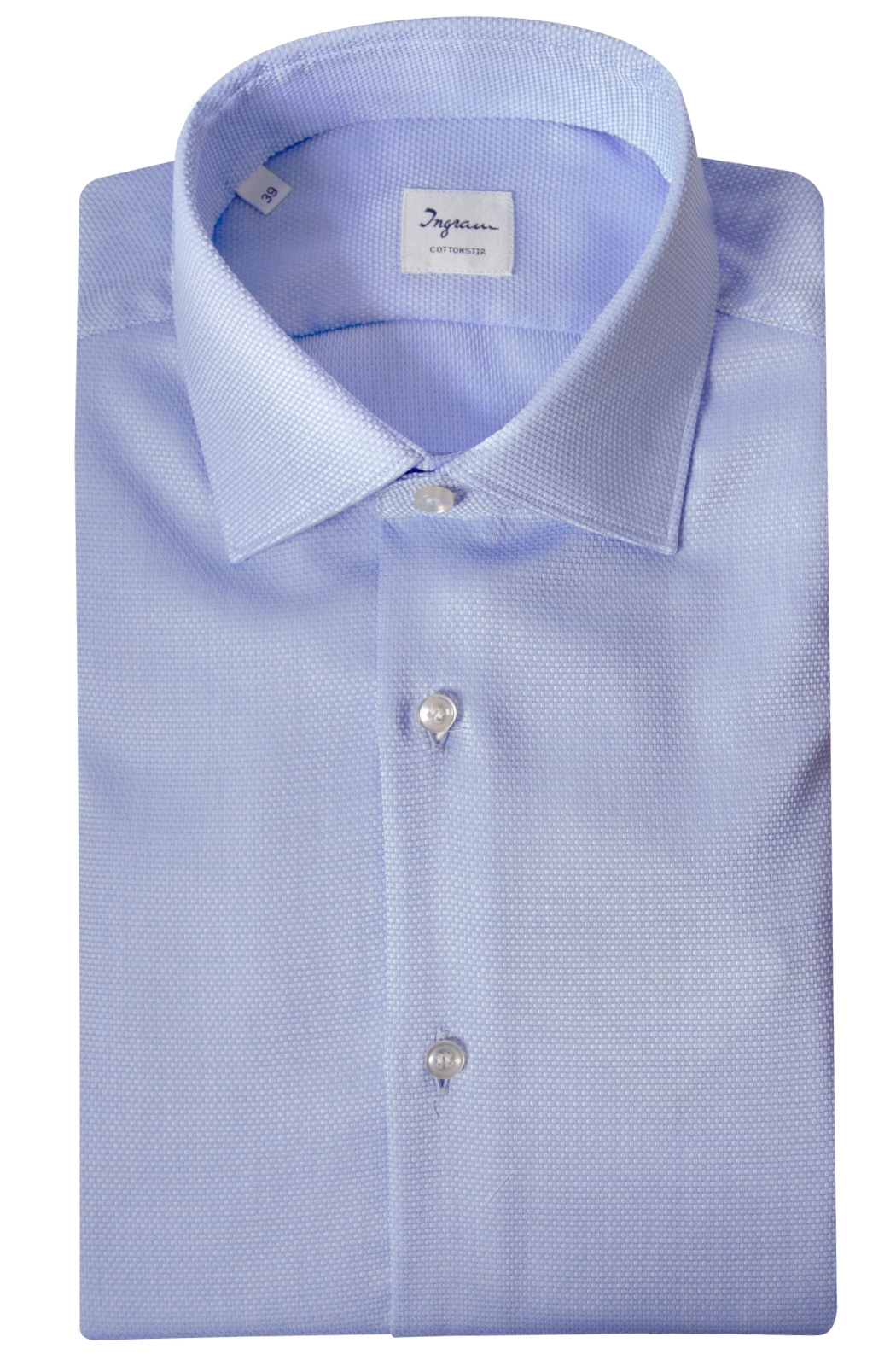 Men’s shirt with half French collar, in stretch cotton poplin.